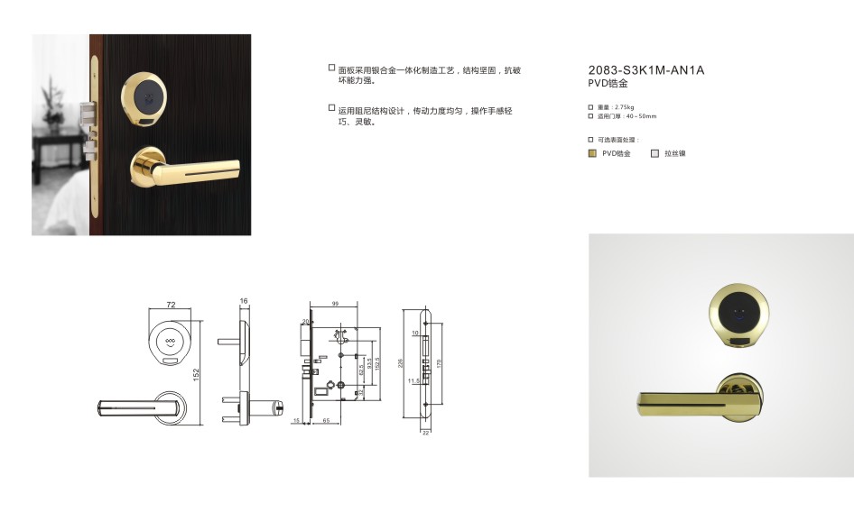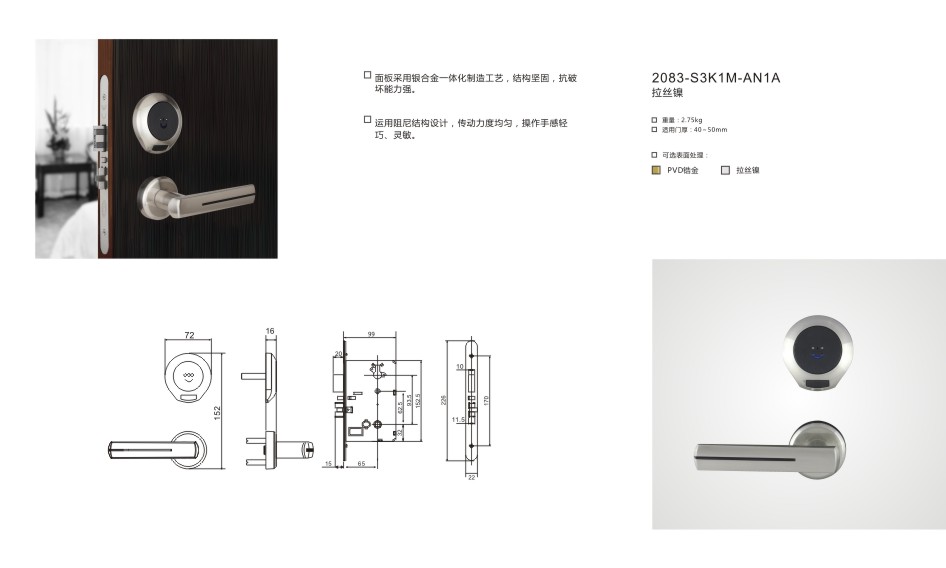 適用門厚:40-50mm